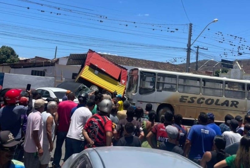 Mulher morre após ônibus escolar colidir em um trailer em Miguel Calmon