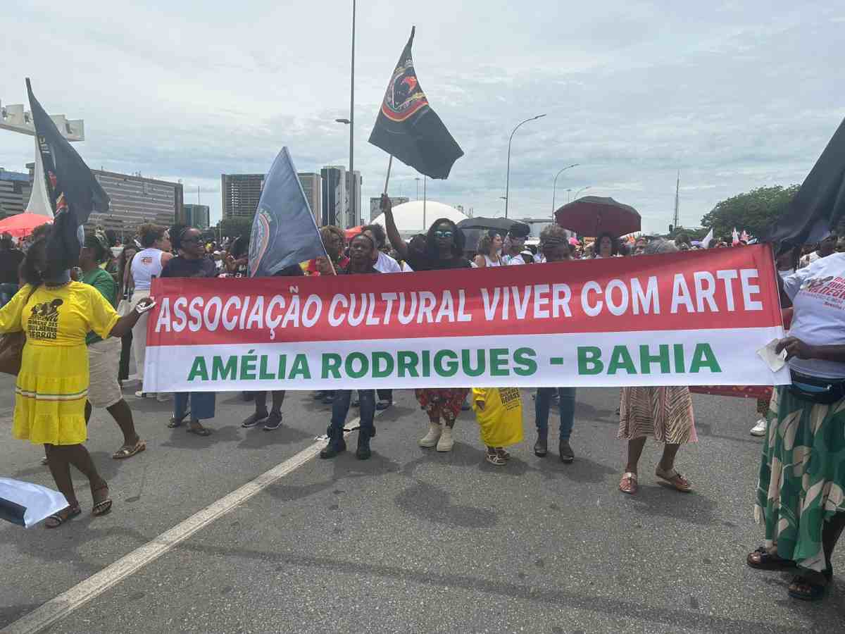 “Estamos aqui juntas, misturadas num só grito, por reparação, pelo fim do racismo nas nossas vidas, pelo fim dos feminicídios, para que nós tenhamos acesso a melhores espaços no mercado de trabalho, aos cargos de representação política”, enfatizou Olívia Santana.