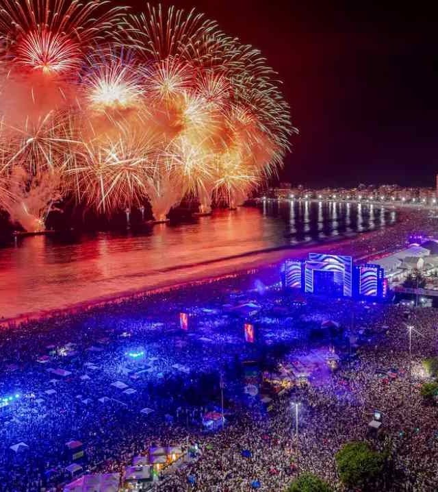 A queima de fogos terá 12 minutos de duração e os fogos serão lançados a partir de 19 balsas no mar de Copacabana. Nos anos anteriores, eram 10 balsas.