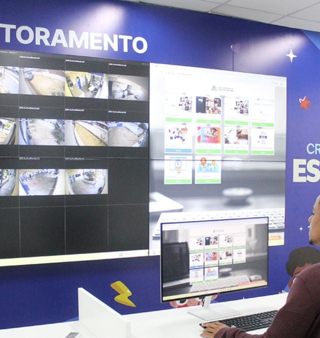 Outro recurso que reforça a estratégia é a criação de uma sala de monitoramento por câmeras, que acompanha em tempo real a rotina das escolas, observando a frequência de alunos, o andamento das atividades e o ambiente escolar.
