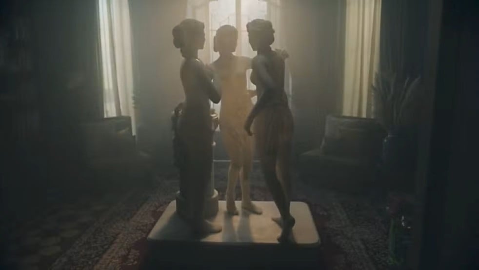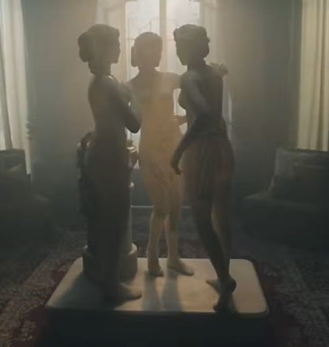 Chamada de “Três Graças”, a obra de arte tem mais de 200 anos e foi trazida da Itália para o Brasil por Rogério (Eduardo Moscovis), falecido marido de Arminda antes da sua misteriosa morte.
