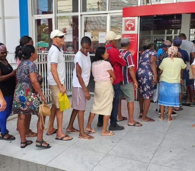 Nesta segunda-feira (29), aposentados e pensionistas do Instituto Nacional do Seguro Social (INSS) se reuniram em uma fila, na Avenida Senhor dos Passos, para o pagamento da aposentadoria referente ao mês de dezembro.