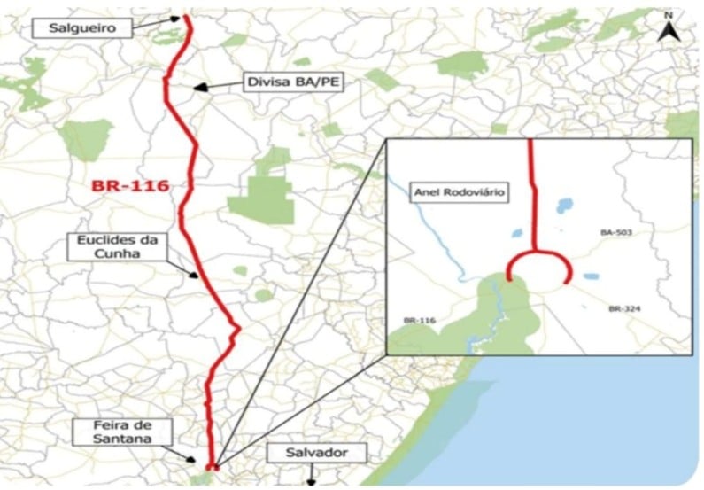 O trecho da BR-116/BA/PE atravessa 16 municípios, e é fundamental para a integração regional e o fortalecimento da logística na região Nordeste.