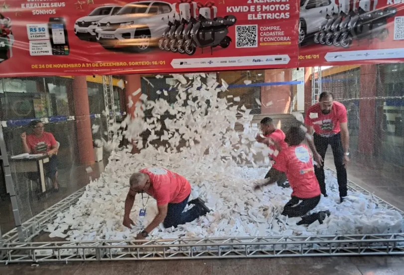Seis ganhadores de Feira de Santana e um de Ipecaetá foram contemplados na campanha Natal de Prêmios 2025, promovida pela Câmara de Dirigentes Lojistas (CDL), que sorteou dois automóveis Renault Kwid Zen 1.0 e cinco motos elétricas para consumidores que compraram no comércio local. O sorteio foi realizado nesta sexta-feira (16), na sede da entidade, marcando o encerramento de uma das principais ações de incentivo às vendas no período natalino da cidade.