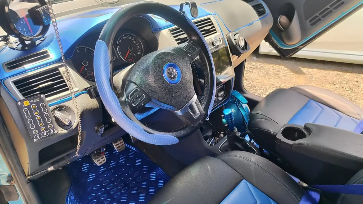 O carro tem iluminação completa de LED, suspensão A, rodas aro 18, bancos de couro e até um efeito de fumaça que ele batizou de bafo do dragão. O investimento? Quase R$ 80 mil. “Comprei por R$ 48 mil. Investi 34 mil para ficar assim.”