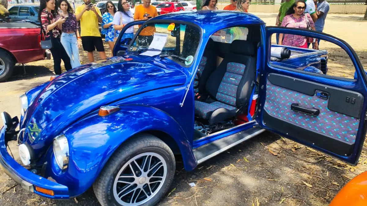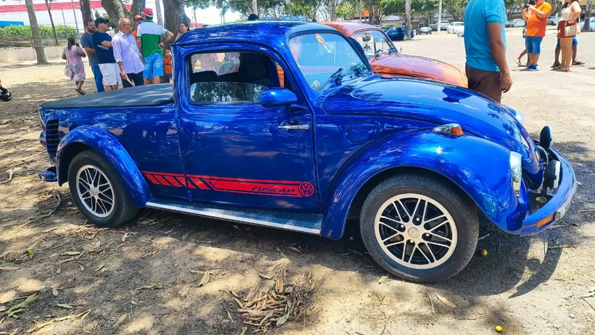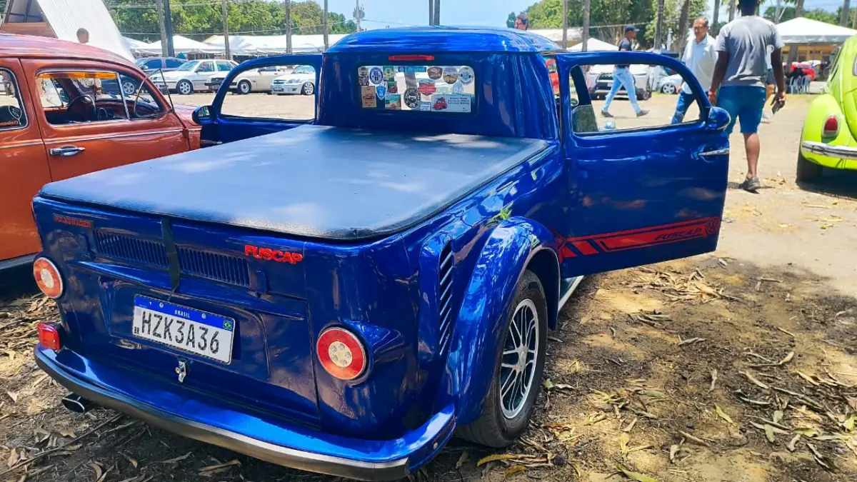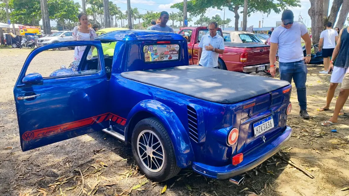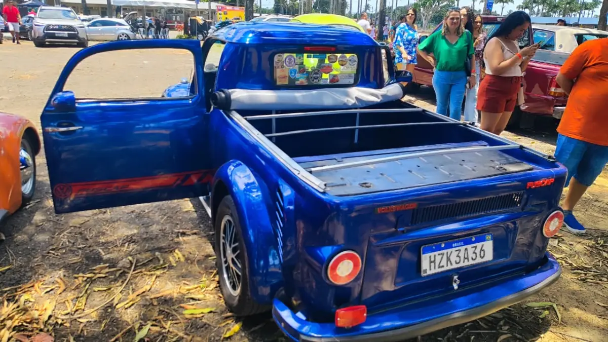Representando a Princesa do Sertão, o Acorda Cidade conversou com o colecionador Gerson Oliveira Carneiro, do grupo Clássicos da Princesa, que levou ao evento um Fusca 1983 transformado em picape. “Esse projeto, entre o carro ficar pronto e a documentação, durou uns cinco anos e meio, mais ou menos”, contou. A transformação incluiu portas suicidas (que abrem da frente para trás), tampa de Kombi e bancos Recaro, tudo feito com capricho artesanal.