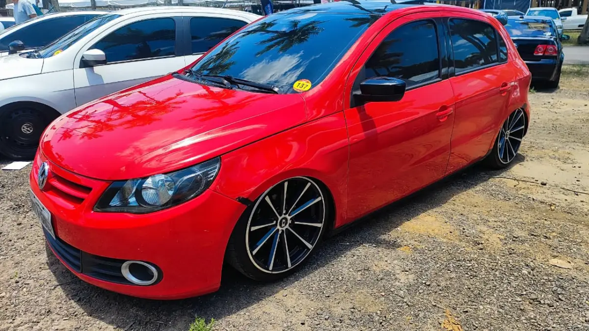 De Simão Dias, em Sergipe, o designer Leno do Fox chegou dirigindo 360 quilômetros para mostrar seu Fox 2015 tunado com porta lambodol pra cima. Ele fez questão de explicar: “Essa porta, ela levanta e suspende automático. Ela custa R$ 3 mil só pra botar elas.”