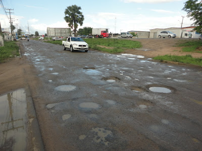 O trecho entre o Senai e a rua Bartolomeu de Gusmão, em frente a Vila Olímpica Edival Sousa, é um exemplo. São cerca de 150 metros de pavimento totalmente esburacado.