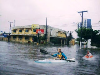 Apesar dos transtornos, algunsinternautastentaramilustrar a situação com humor e usaram a rede social Facebook paradivulgarmontagenscriativas de fotos feitas em partesalagadasdacidade.