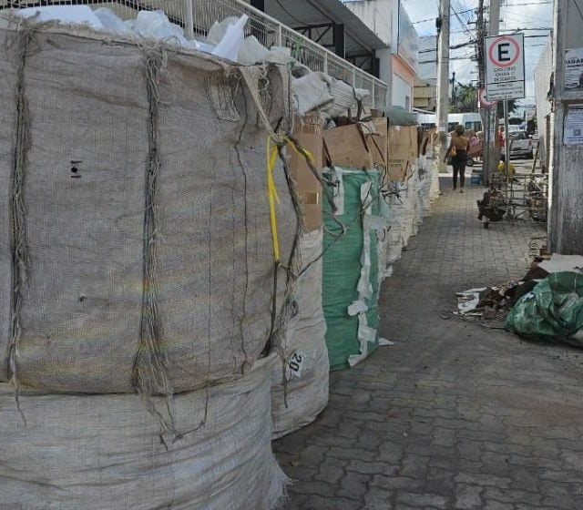 Caminhar pela rua Barão de Cotegipe, em Feira de Santana, se transformou em uma verdadeira prova de resistência. Em um trecho da calçada, pedestres estão tendo que demonstrar equilíbrio ao desviar de sacolas gigantes contendo materiais recicláveis.
