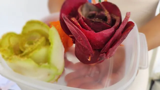 Com duração de duas horas, o curso ensinará técnicas para criar flores decorativas utilizando alimentos como beterraba, cenoura, chuchu e batatinha. Os participantes também aprenderão a aplicar glitters comestíveis para finalizar as peças.