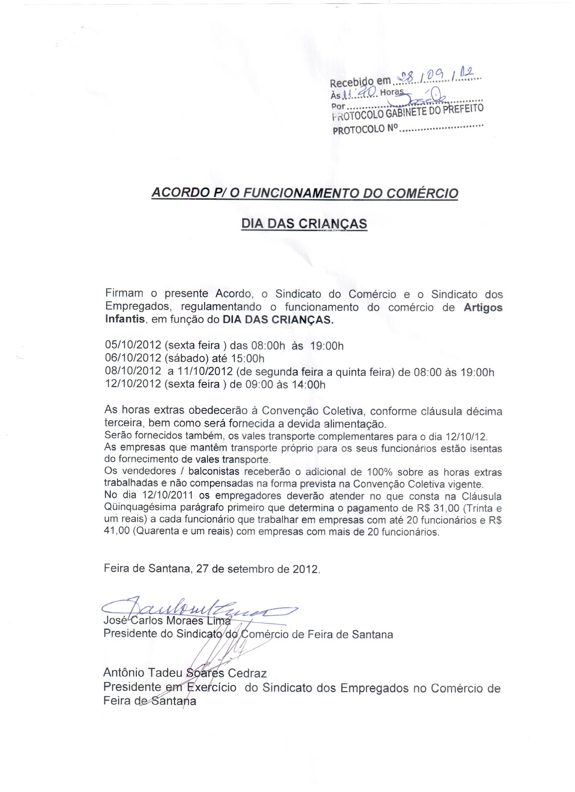 O comércio de Feira de Santana  vai funcionar em horário especial por conta do Dia das Crianças.