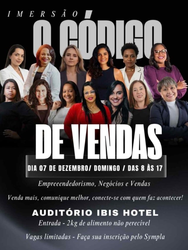 A Imersão O Código de Vendas foi idealizada e será realizada inteiramente por mulheres, reunindo empreendedoras, mentoras, especialistas e profissionais de diversas áreas. Além de proporcionar um ambiente de aprendizado e networking, o evento tem um caráter social, com a arrecadação de alimentos que serão doados a instituições beneficentes de Feira de Santana.