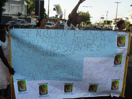 Na tarde desta quinta-feira (26), familiares e amigos de Raquel estiveram com cartazes na avenida João Durval Carneiro, centro de Feira de Santana.