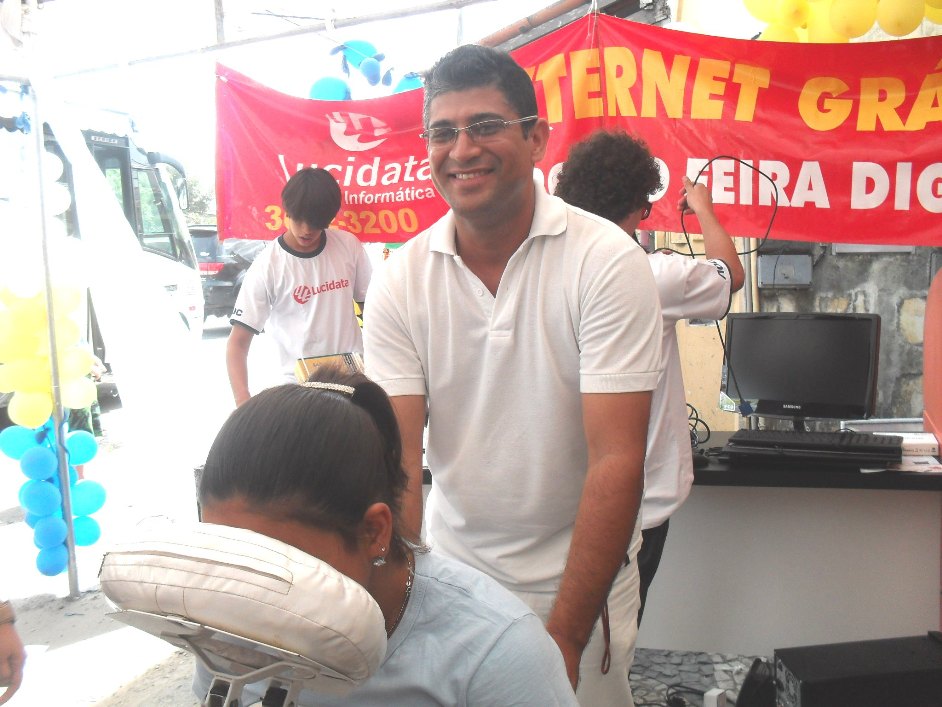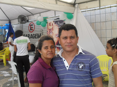 Stop. A massoterapeuta Sabrina Sousa e o versátil massoterapeuta Geysel Santos atenderam dezenas de pessoas através da massagem expressa quick.