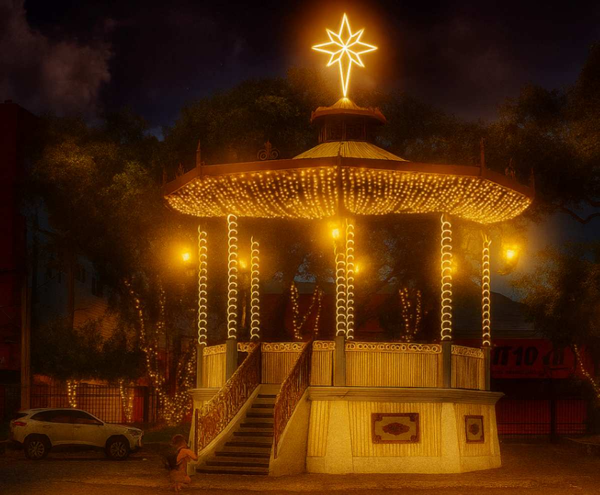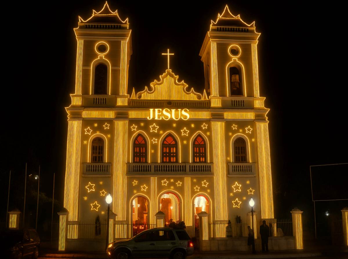 Chegando no centro comercial, o calçadão da Sales Barbosa receberá cores vibrantes e detalhes lúdicos. O percurso decorativo se encerra na Praça da Matriz, com um túnel luminoso, a fachada da igreja iluminada e um presépio unindo fé, cultura e tradição.