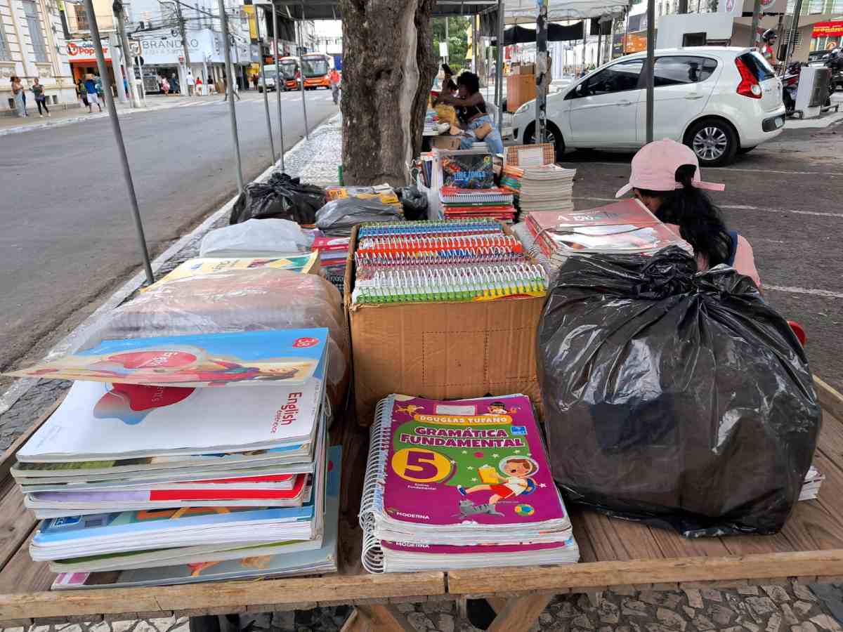 “Temos todas as matérias escolares, livros que são didáticos e paradidáticos. E livros de leituras, incentivo à leitura. Compramos, vendemos e trocamos. Agora a questão da troca, acontece mais em janeiro. Em fevereiro é mais a venda. Mas quem quiser trocar livro tem que ser agora”.