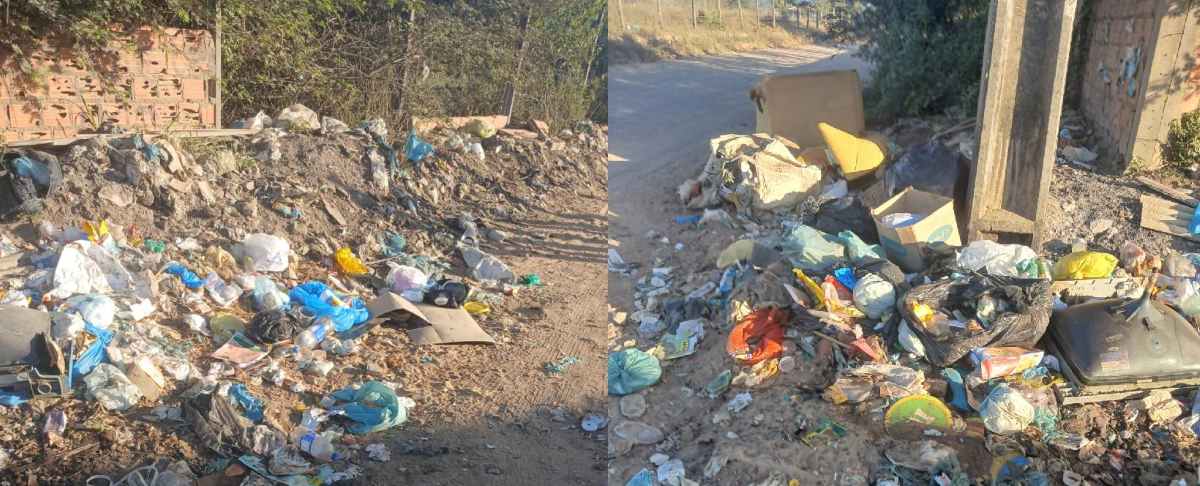 No bairro Pedra Ferrada, a queixa vai além do mato e da sujeira. Moradores relatam que, na Estrada de Jaguara, em frente a um comércio local, o lixo vem sendo constantemente despejado. Além do acúmulo, há registros de queima irregular de resíduos, o que intensifica ainda mais o problema para quem vive nas proximidades. O flagrante enviado por uma moradora do bairro mostra a grande quantidade de lixo espalhada pela entrada da rua.