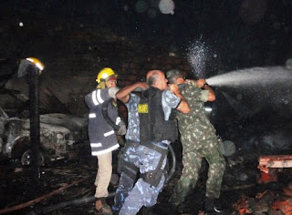Equipes do Corpo de Bombeiros, que chegaram em duas viaturas, estiveram no local e conseguiram debelar as chamas. Soldados do Exército e guardas municipais também ajudaram a apagar as chamas usando carros-pipa.