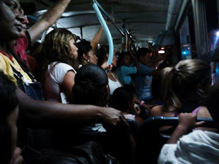 Tudo começa com a longa espera nos pontos de ônibus. A maioria não tem abrigo adequado para a população, que fica exposta a sol e chuva Com o passar dos minutostão importante para a pontualidade do estudante e do trabalhador, o número de pessoas a espera da condução vai aumentado e quando finalmente o ônibus surge, o veículo é rapidamente lotado.