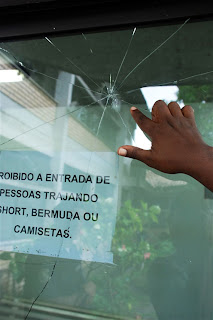 A chegada do grupo ao local foi marcada por um ato de vandalismo de um dos integrantes que quebrou a vidraça de uma janela utilizando um pedaço de madeira. A ação foi interceptada por prepostos da Guarda Civil Municipal e Polícia Militar.