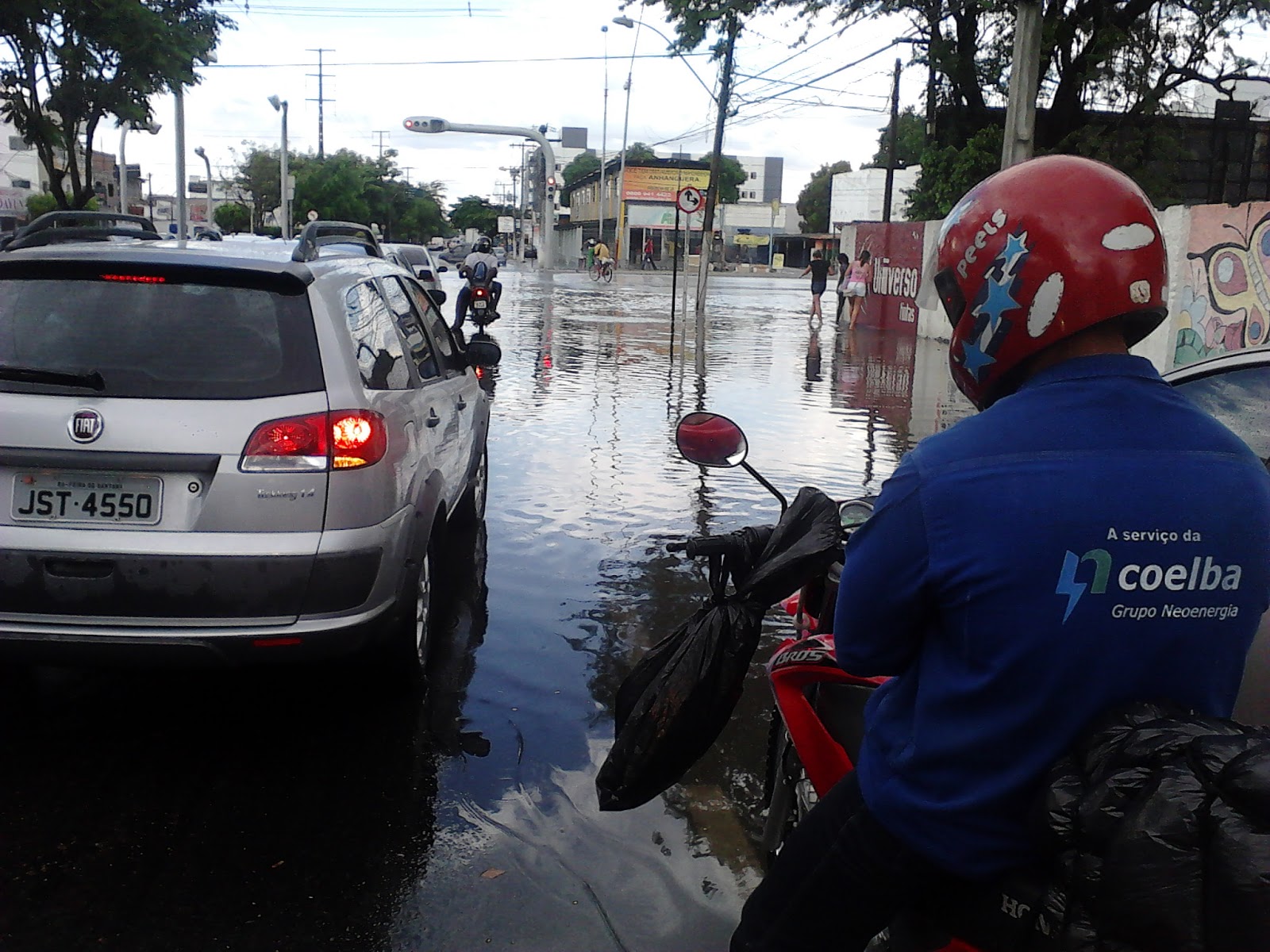 Os pedestres também encontraram dificuldade para transitar em algumas ruas, pois até mesmo as calçadas estavam cheias de água