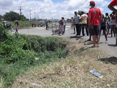 Para interditar a pista, eles colocaram materiais plásticos, pedras, pneus e até uma carroça. O motivo da manifestação foi o acidente envolvendo um morador do bairro que estava de moto.