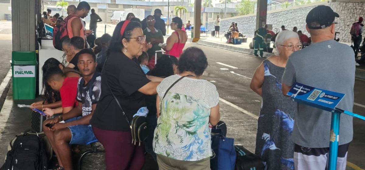 Janaína está viajando com as filhas, irmãs e sobrinhos, e contou que passou a virada de ano em Bom Jesus da Lapa, onde viu a queima de fogos na praça. O grupo viajou às 16h30 e chegou em Feira de Santana por volta de 4h30. Porém, o ônibus para Aracaju sai às 15h.
