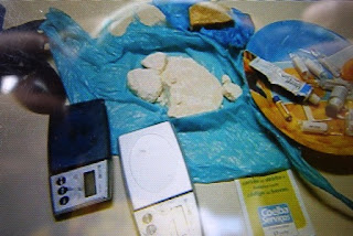 De acordo com policiais militares da equipe Lobo 67, que efetuaram a prisão, com os acusados foram encontrados aproximadamente meio quilo de cocaína enrolada em um saco plástico; uma pedra grande de crack; duas balanças de precisão; seis ampolas de substância anestesica; um tubo de xilocaína (anestésico) e a quantia de R$ 380.