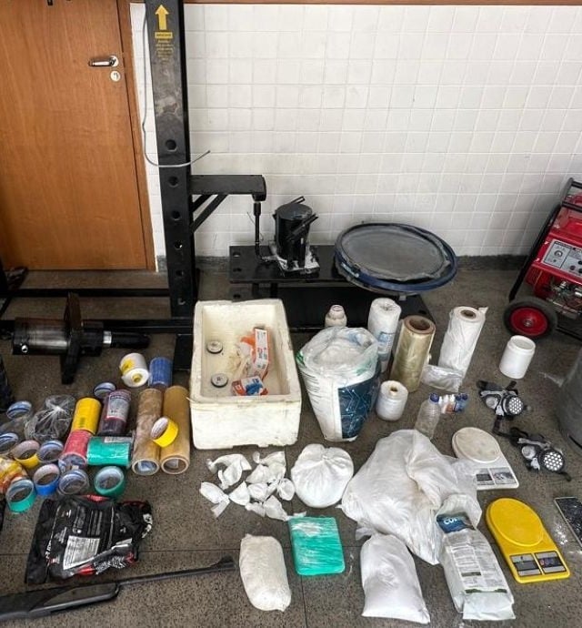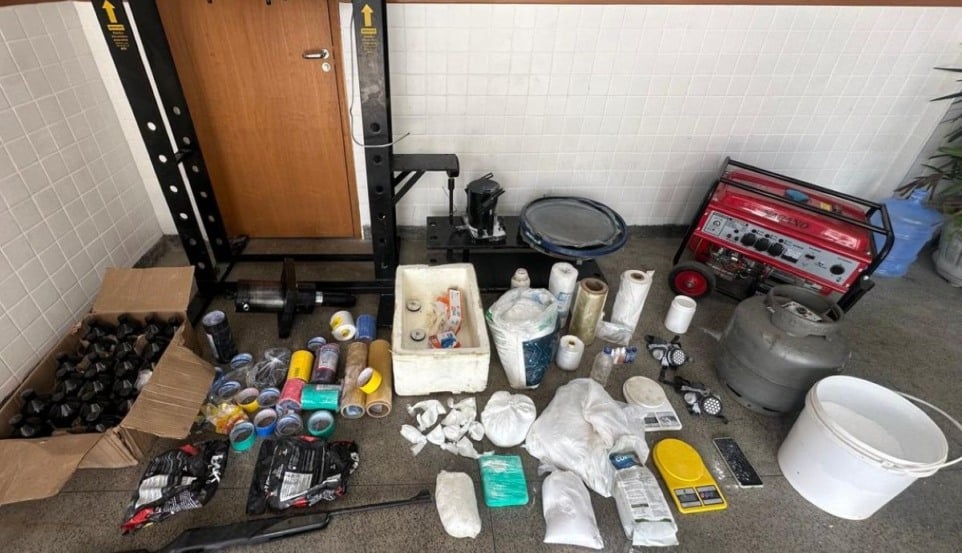 Durante as buscas, os policiais localizaram uma edificação onde funcionava um laboratório de refino de substâncias entorpecentes, especificamente cocaína. No local, foram encontrados diversos materiais utilizados na fabricação de drogas.