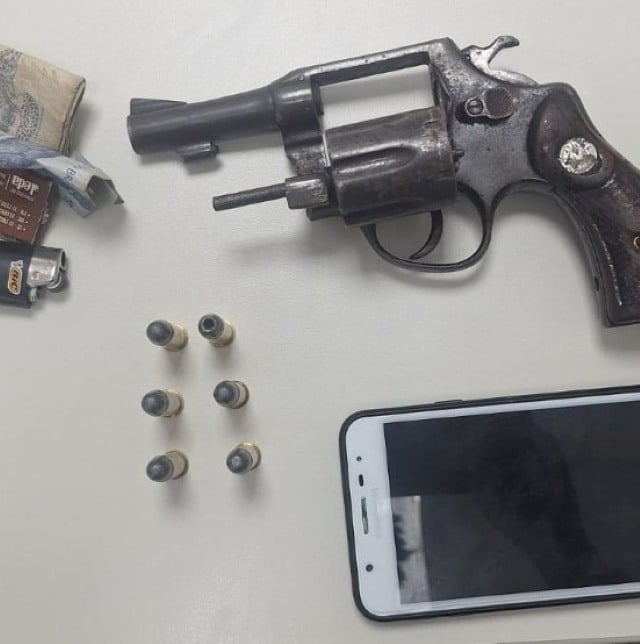Em patrulhas buscando pelo suspeito, o mesmo foi encontrado na rua Monsenhor Moisés do Couto portando revólver calibre .38, com 6 municções intactas, além de um smartphone.