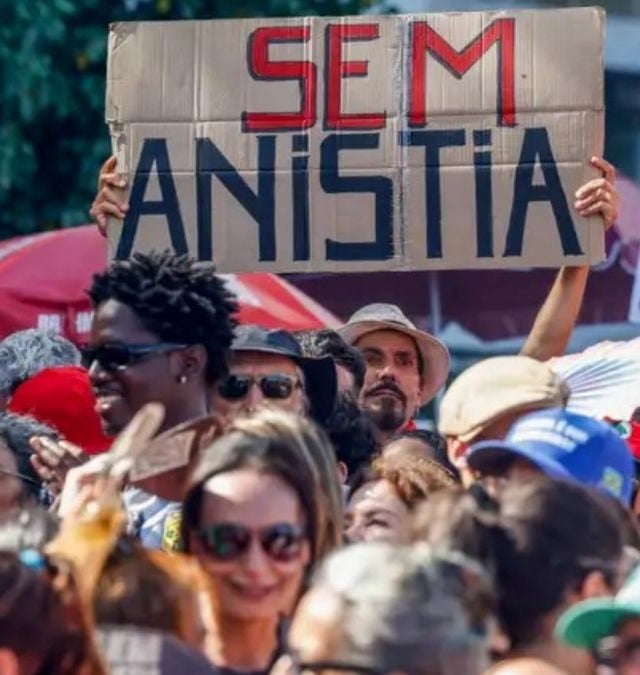 “A convocação desse ato foi motivada pela votação que aconteceu na Câmara dos Deputados essa semana do PL da Dosimetria. Nós entendemos que é uma anistia e que os crimes que foram cometidos contra a democracia são muito graves e não podem ser perdoados, até porque a impunidade faz com que venham outras tentativas de golpe depois”, disse Juliana Donato, da Frente Povo Sem Medo. Ela avalia que a pressão popular nas ruas é um movimento que pode, sim, levar à derrota do PL na votação que ainda ocorrerá no Senado.