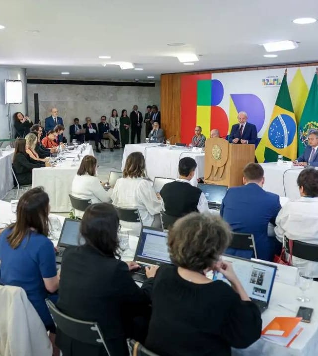 Na manhã desta quinta-feira, Lula recebeu jornalistas para um café da manhã, no Palácio do Planalto, seguido de coletiva de imprensa. Ele está acompanhado dos ministros da Fazenda, Fernando Haddad; da Casa Civil, Rui Costa; das Relações Exteriores, Mauro Vieira; e do Meio Ambiente e Mudança do Clima, Marina Silva.