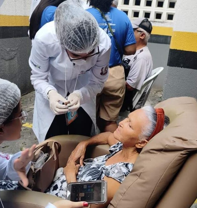 “A gente tem orientação às pessoas jurídicas, aferição de pressão, medida da pressão arterial, da glicemia capilar, orientação da saúde bucal, orientação do pé diabetico com o pessoal da fisioterapia, e além do mais, o apoio psicológico através do curso de psicologia”, completou.