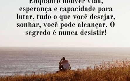 Enquanto houver vida, esperança e capacidade para lutar, tudo o que você desejar, sonhar, você pode alcançar. O segredo é nunca desistir!