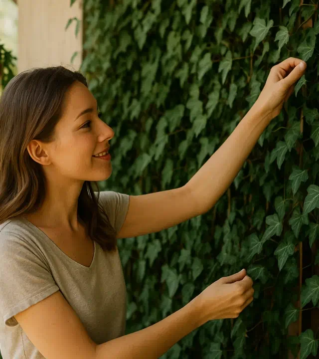 Quer um visual de floresta dentro de casa? A hedra é ideal para isso. Por ser uma trepadeira, ela se fixa facilmente em grades, treliças ou painéis de madeira, criando paredes vivas cheias de textura e profundidade.