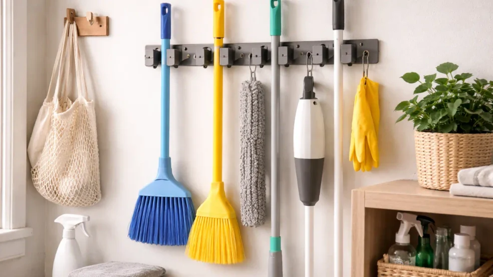 Soluções práticas para guardar vassouras sem bagunçar o ambiente