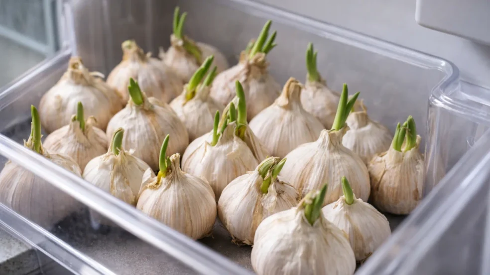 Quando o alho é armazenado no refrigerador, a umidade presente no ambiente e nos próprios alimentos se acumula nas cascas. Mesmo imperceptível, esse microclima cria condições perfeitas para o desenvolvimento de fungos. Em alguns casos, o alho até começa a brotar dentro da geladeira, dando origem àquele talo verde no centro do dente.