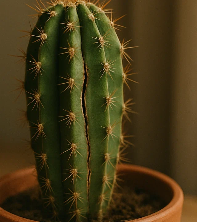 Ao contrário do que muitos pensam, rachaduras em cactos não surgem só por excesso de água. Elas são, na verdade, resultado de uma variação brusca na hidratação. O cacto pode passar dias em solo seco, armazenando água lentamente — e de repente recebe uma grande quantidade de água que o faz inchar de uma vez. É como se a planta não tivesse tempo de se adaptar à expansão.