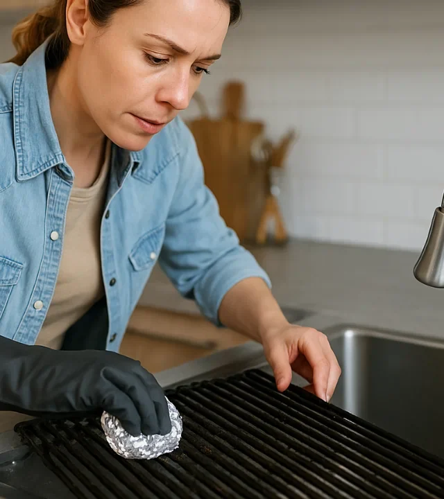 Ela já estava cansada de adiar a limpeza da grelha. Cada vez que olhava para aquela crosta escura grudada no metal, sentia um misto de desânimo e frustração. Produtos caros, escovas de aço, água fervente… nada parecia dar conta sem muito esforço. Até que um vídeo simples nas redes sociais revelou um truque com papel alumínio que parecia bom demais para ser verdade. Decidiu testar. E em menos de 20 minutos, a grelha estava limpa — sem esfregar, sem dor no braço e sem drama.