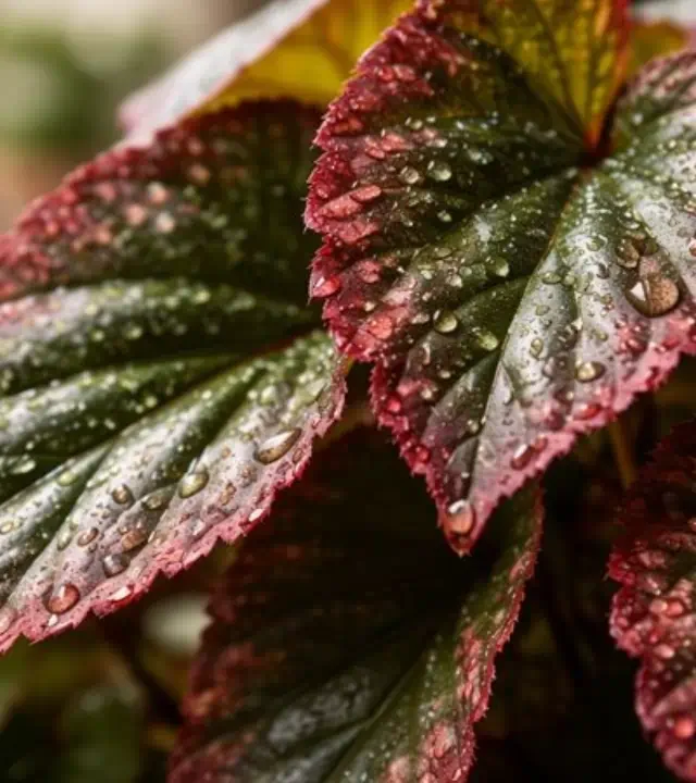 A maioria das espécies de begônia — como a Begonia rex, a maculata e a elatior — possuem folhas com textura aveludada ou cerosa, cheias de microestruturas que dificultam a secagem quando molhadas. Diferente de plantas com folhas lisas e espessas, as begônias não foram feitas para receber água diretamente nas partes aéreas.
