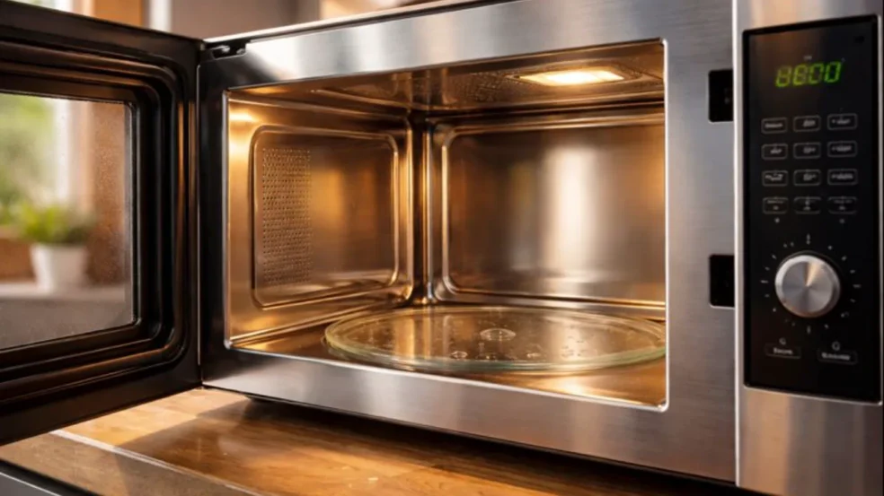 Outro erro comum é não secar o interior após a limpeza. A umidade restante reage com resíduos antigos de comida e cria um odor “requente”, aquele cheiro que parece voltar sempre, mesmo depois de limpar. É por isso que muitas pessoas acham que o micro-ondas “pegou cheiro” para sempre, quando na verdade o problema está no processo.
