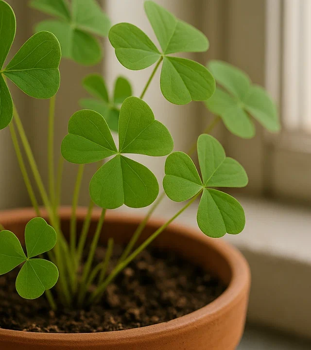 A Oxalis é sensível tanto ao encharcamento quanto ao ressecamento. Quando o solo está muito seco, ela fecha as folhas para reter umidade. Quando está encharcado, fecha como forma de autoproteção. O truque é manter o solo levemente úmido ao toque, sem encharcar o fundo do vaso.