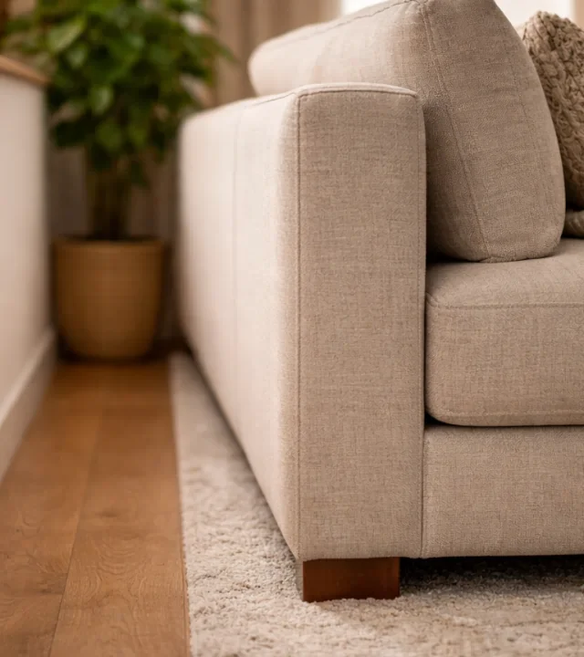 Sofás grandes, quando totalmente colados, funcionam como bloqueadores energéticos. Eles criam uma “parede falsa” que interrompe o fluxo natural do ambiente.