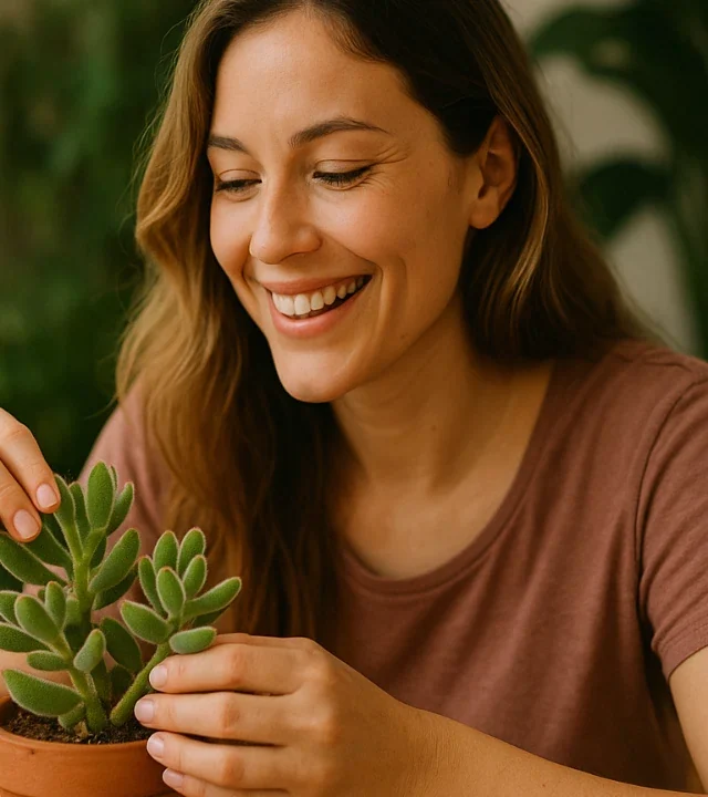 A Suculenta Pata-de-urso é uma das plantas mais fáceis de propagar. Basta destacar uma folha saudável, deixá-la secar por dois dias e depois colocá-la sobre o substrato levemente úmido. Em poucas semanas, novas raízes começam a surgir.